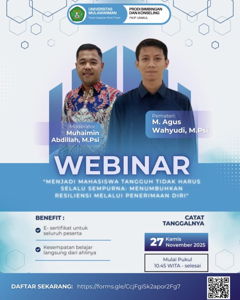 Program Studi Bimbingan dan Konseling FKIP Universitas Mulawarman kembali menyelenggarakan kegiatan webinar sebagai bentuk upaya penguatan kompetensi dan karakter mahasiswa BK.
